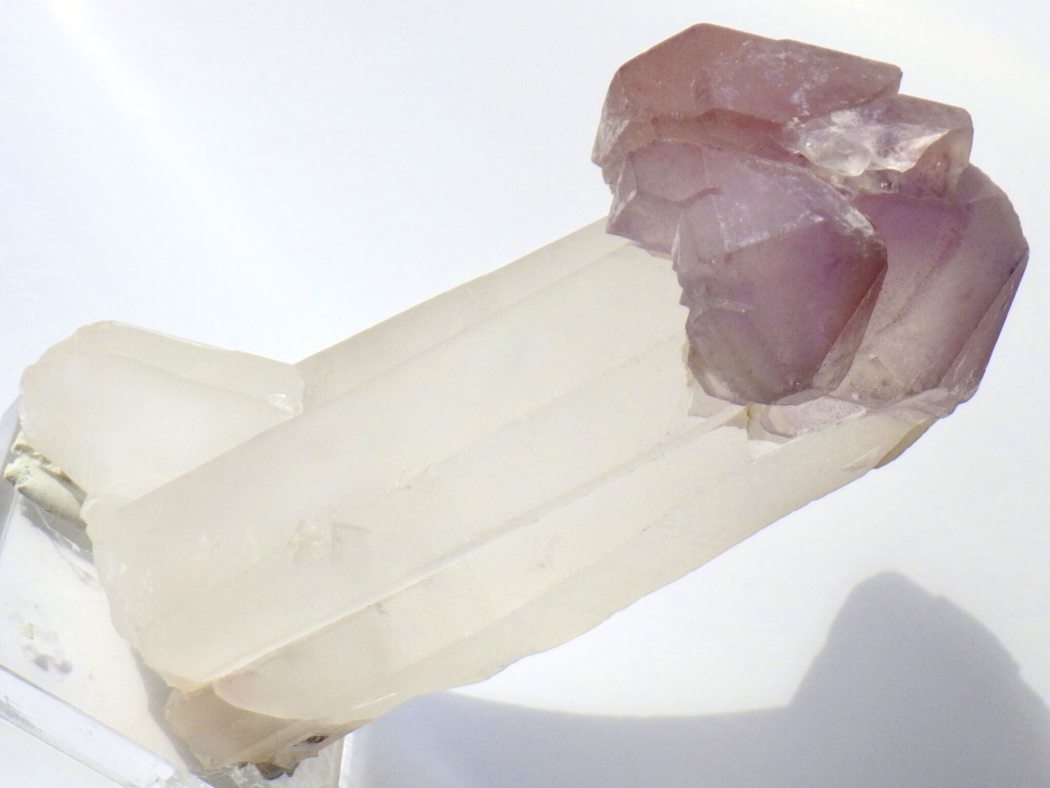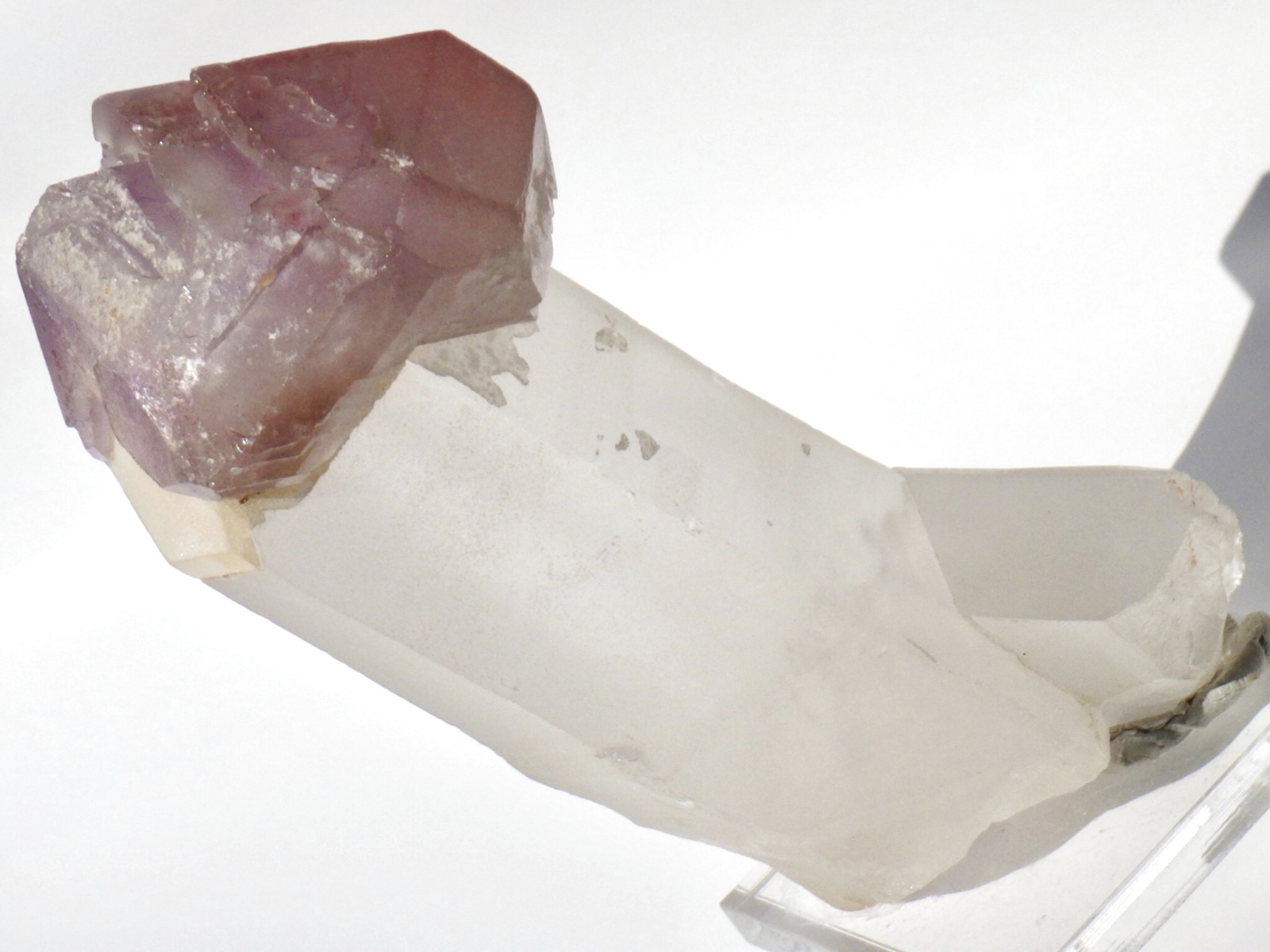 水晶の先端部がアメシストの松茸状結晶になっており、しさもツインになっている、とてもユニークで珍しい一品です。
