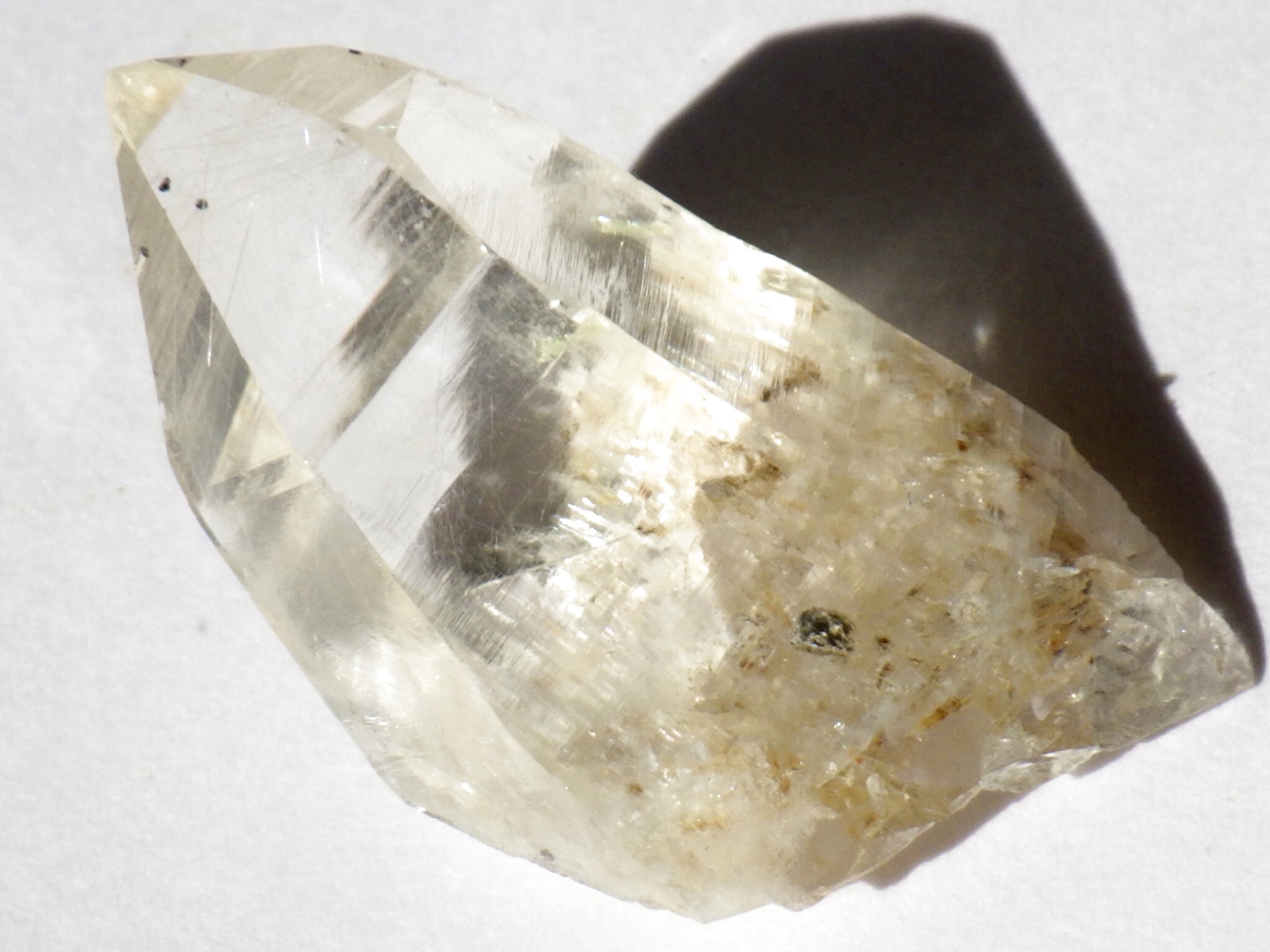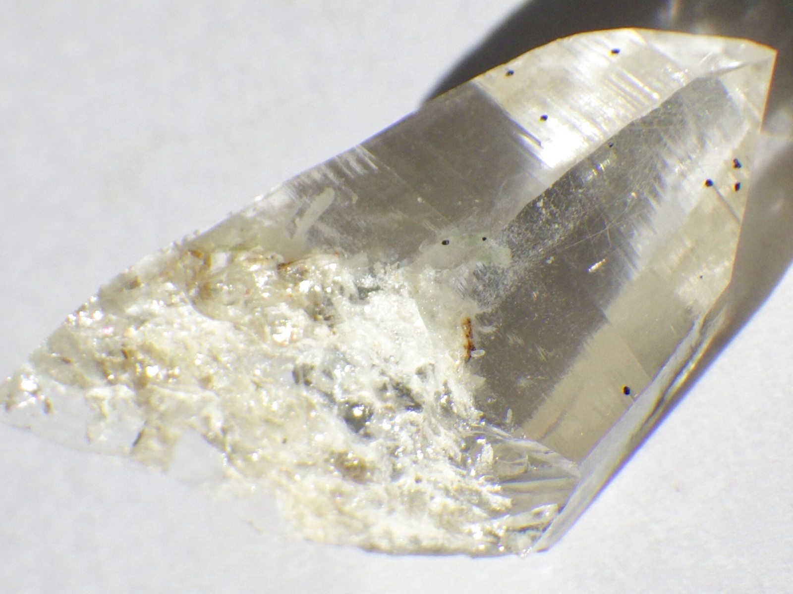 先端は透明感や光沢が綺麗で、細かいルチル状の角閃石がきらめく様子が見られます。