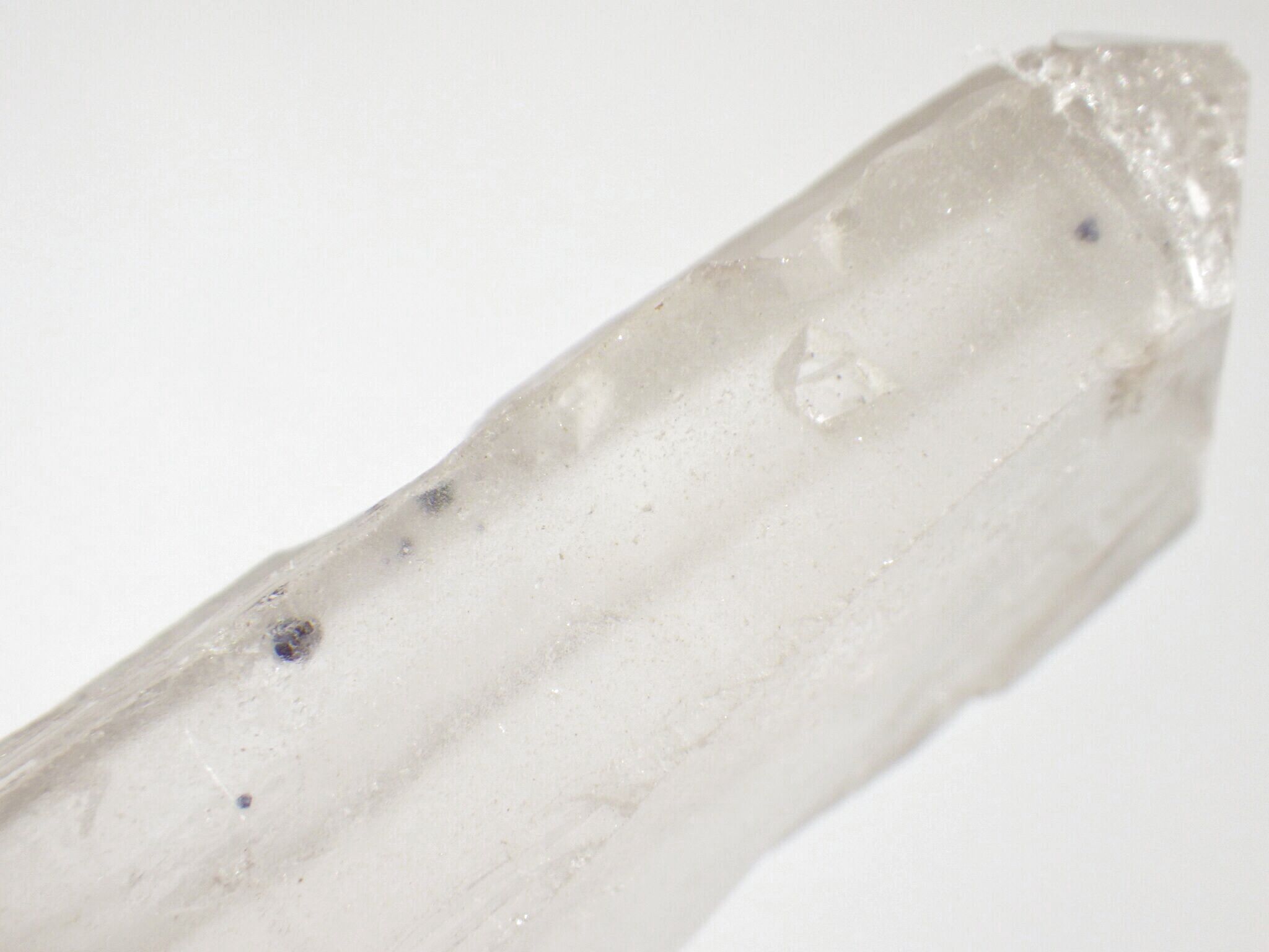 側面部に他のポイントとの接合痕や、フローライト結晶が抜けた痕が見られる両頭ポイントです。