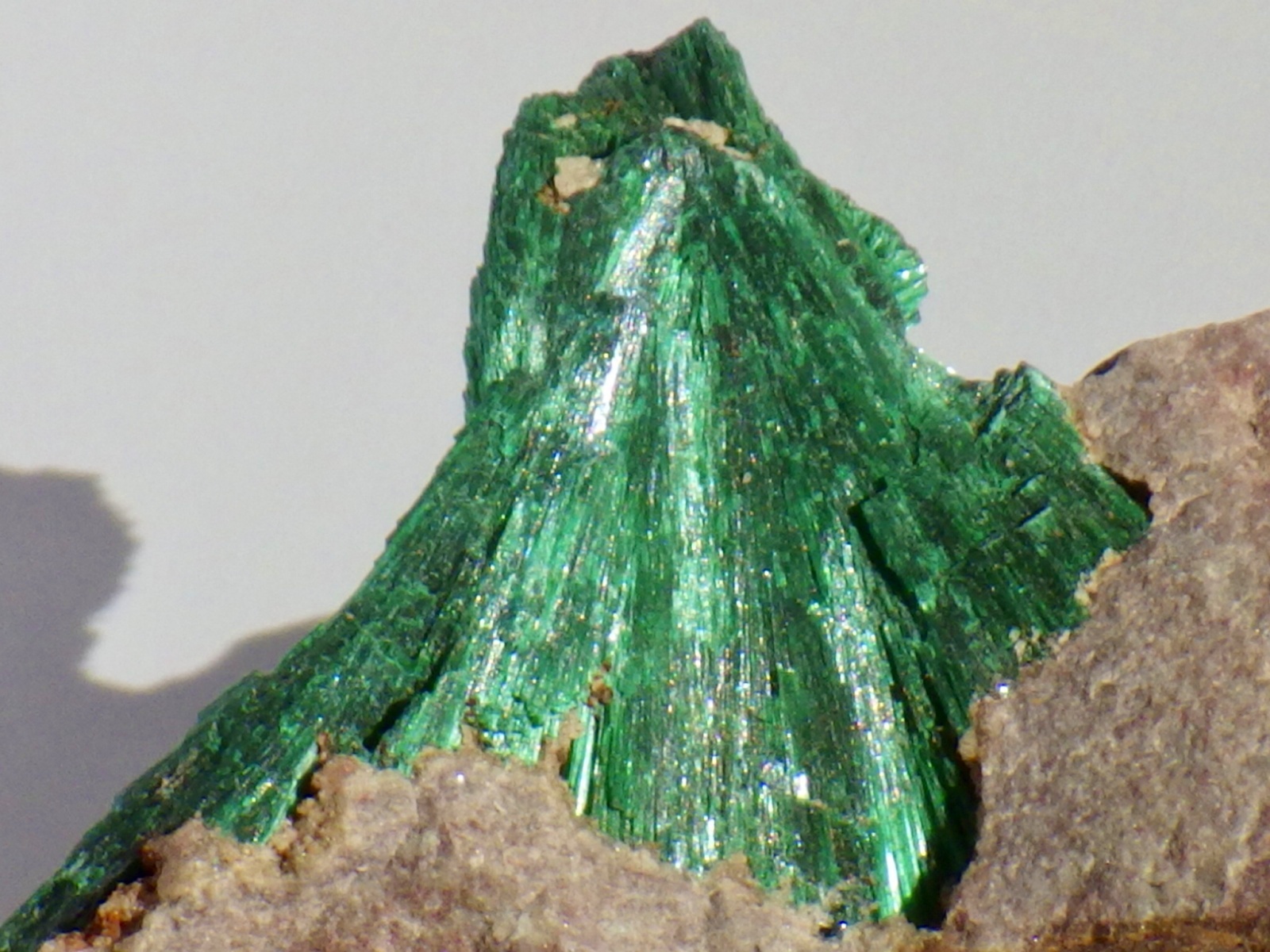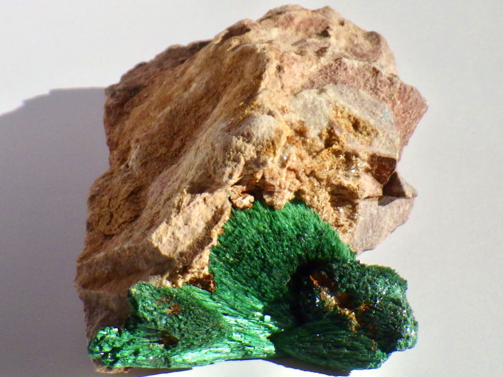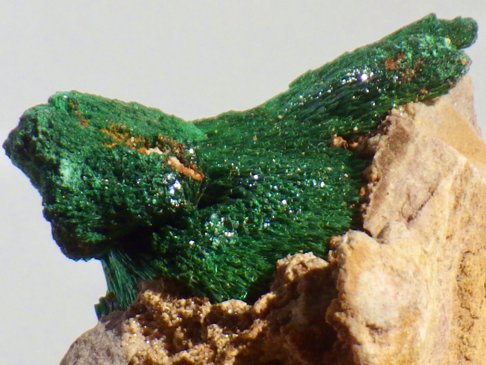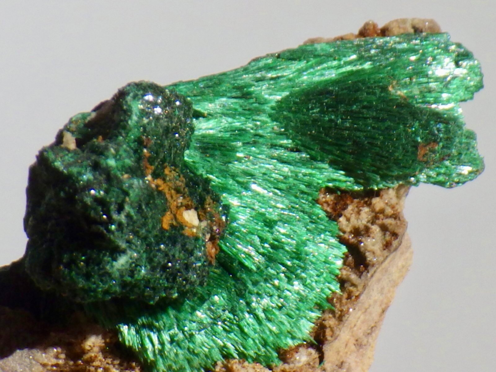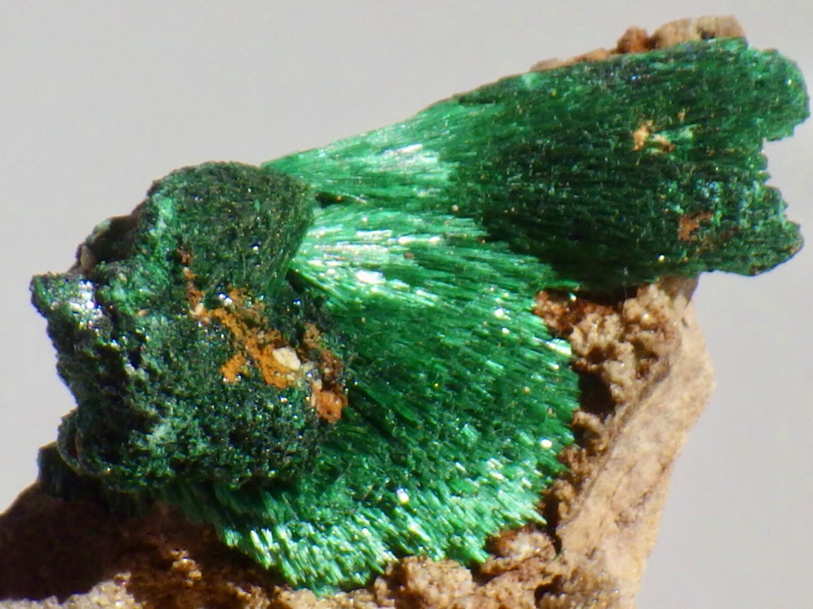 きめ細かい結晶が立体的な放射状結晶になっているもので、ビロード状の光沢がとても美しいです。