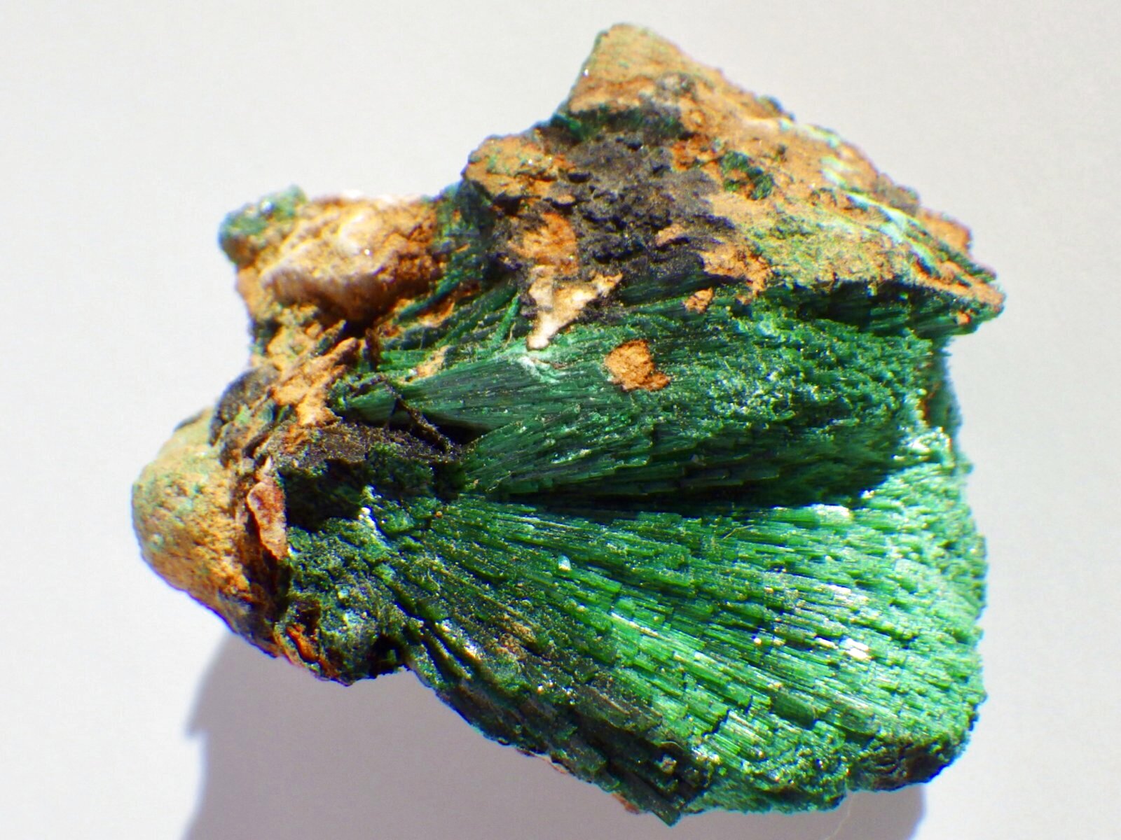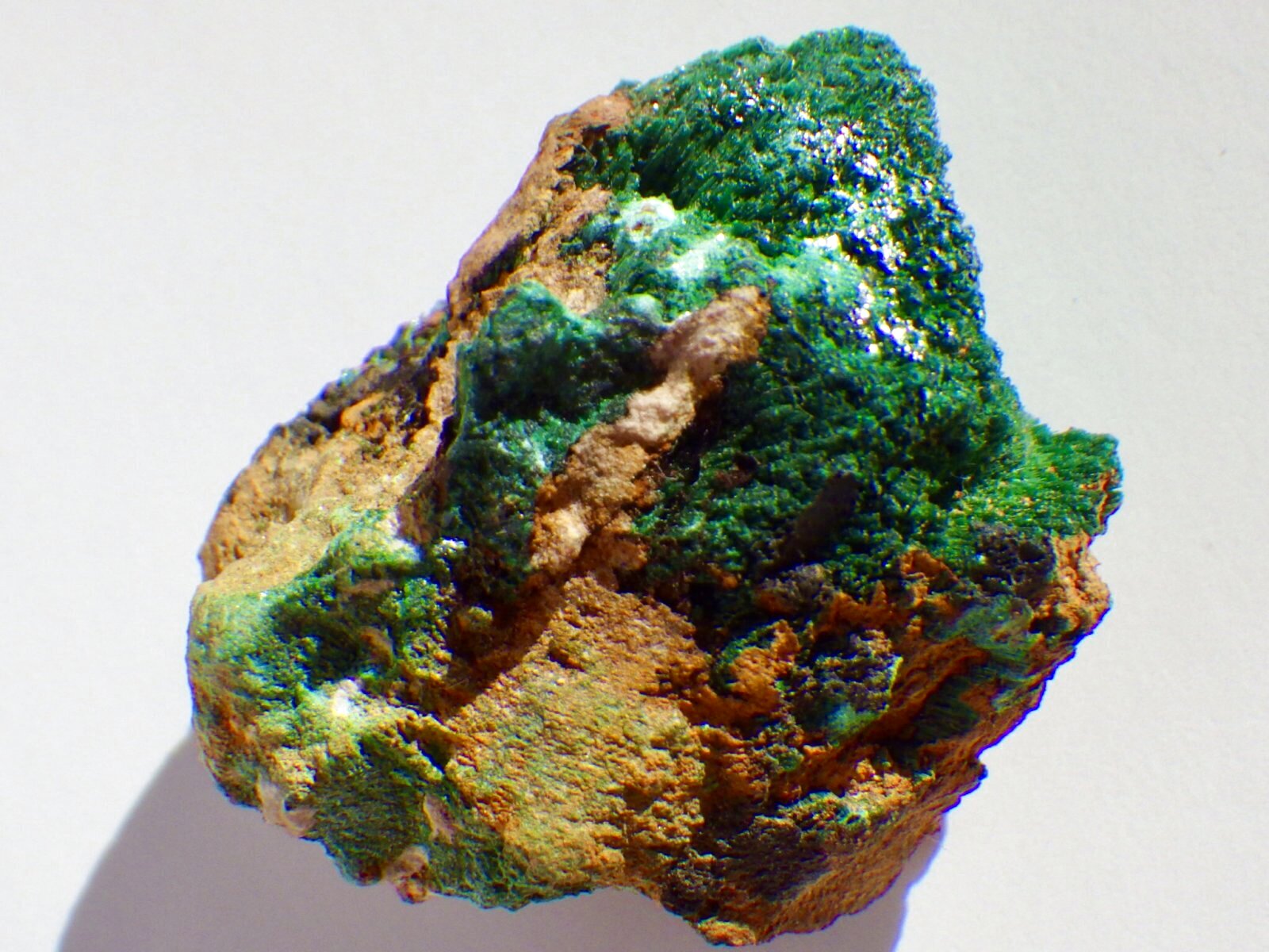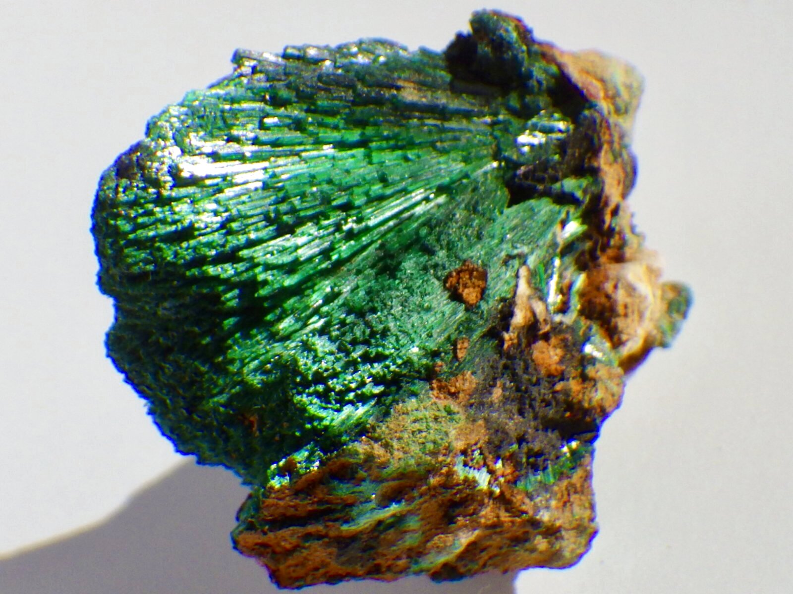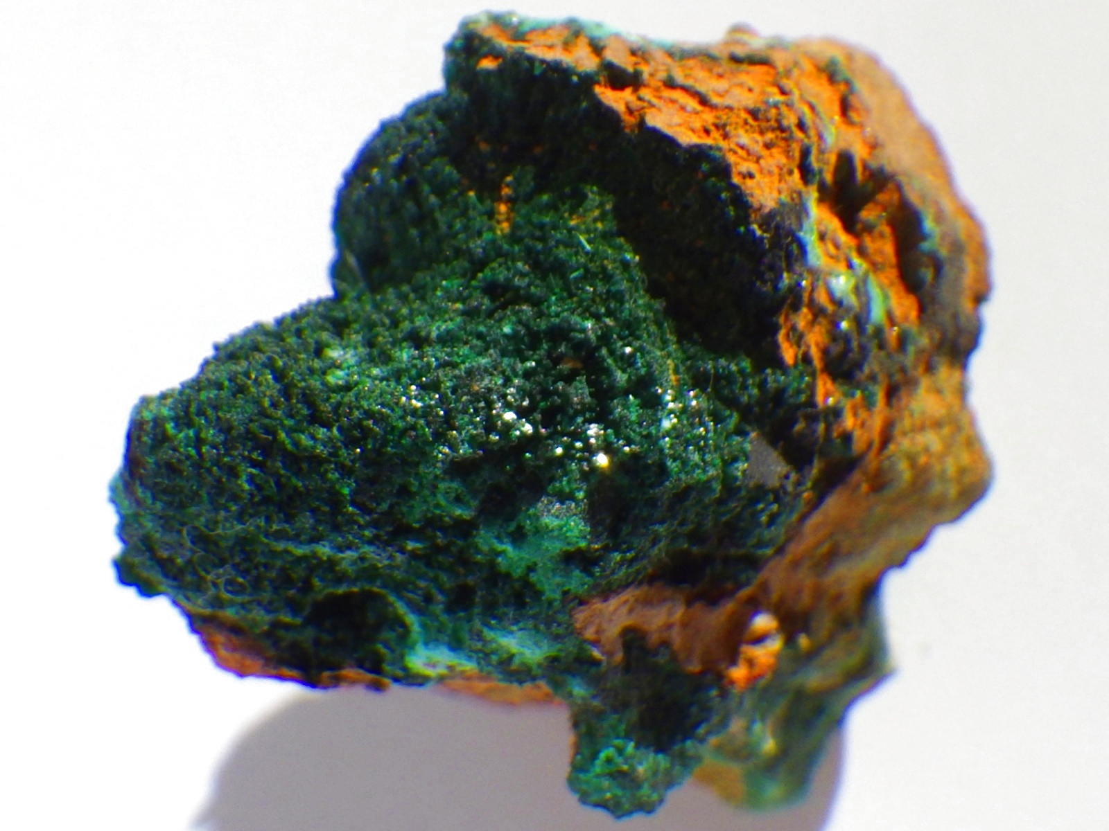 きめ細かい結晶が立体的に集合していて、ビロード状の光沢や鮮やかなグリーンがとても美しいです。