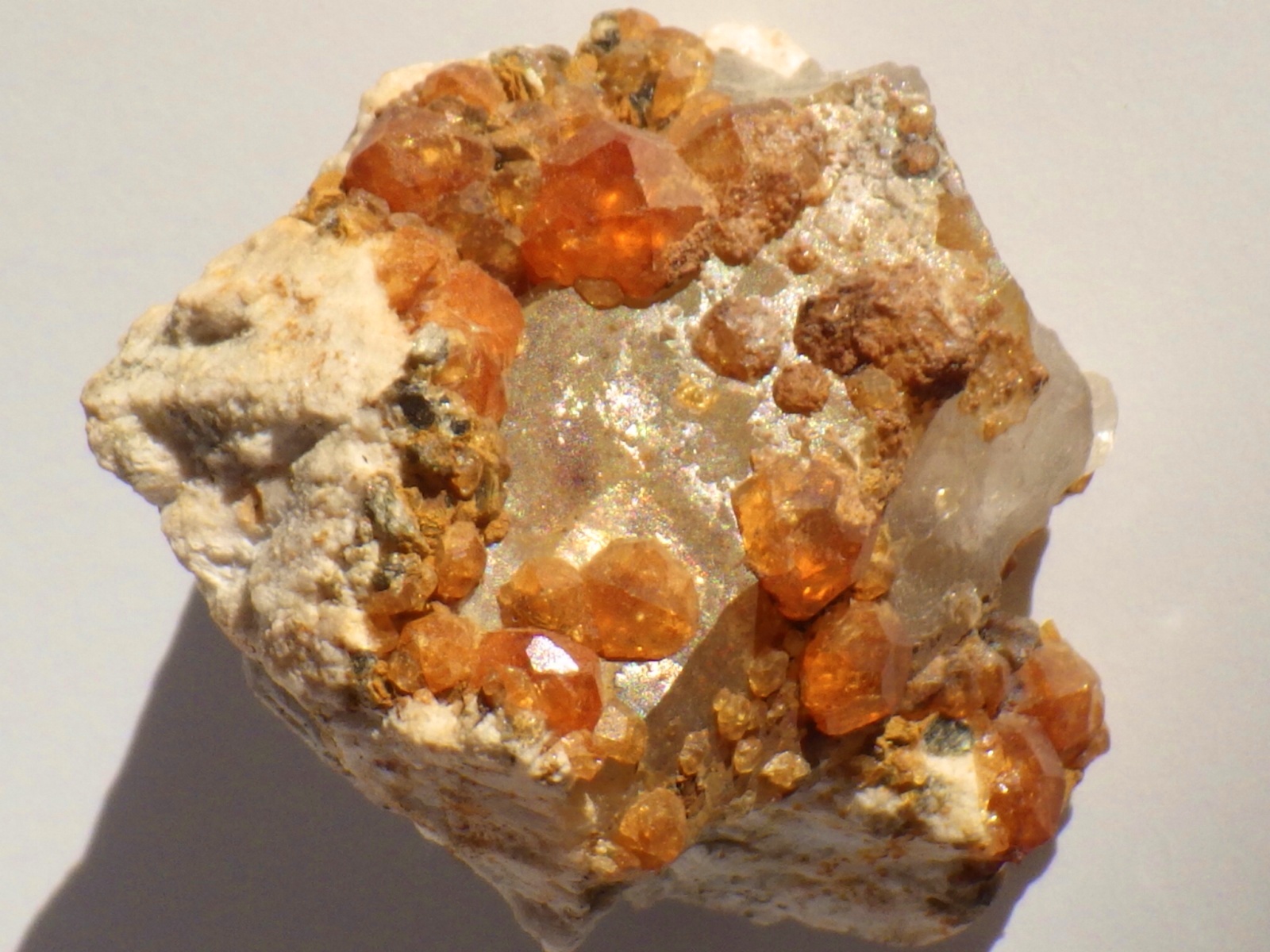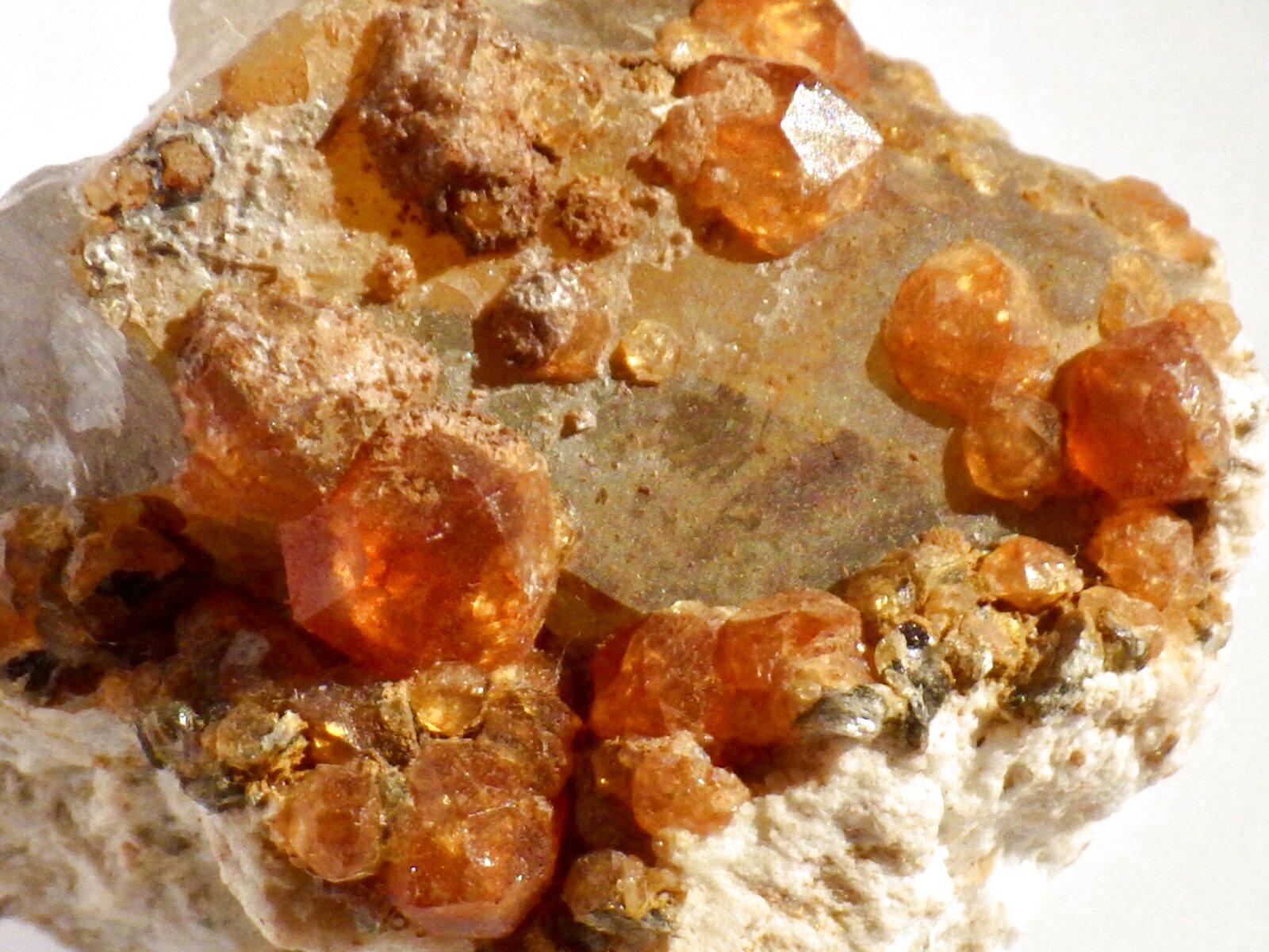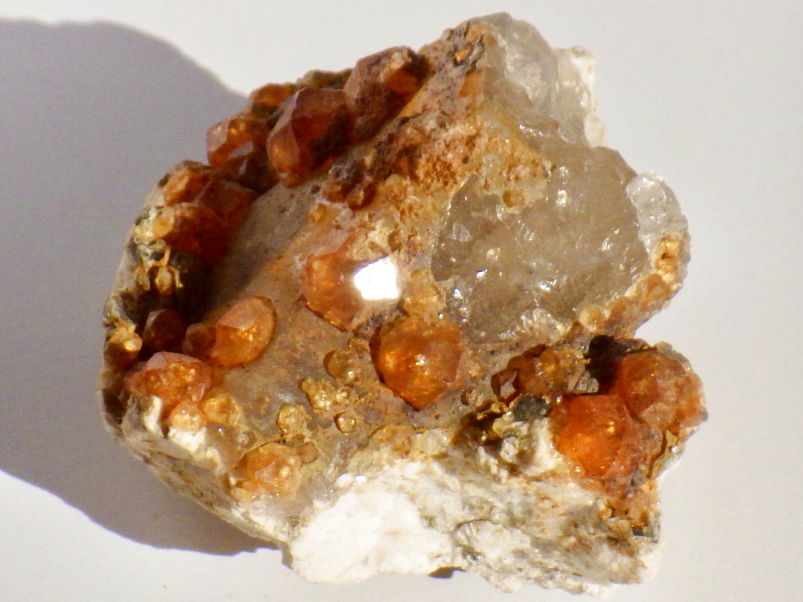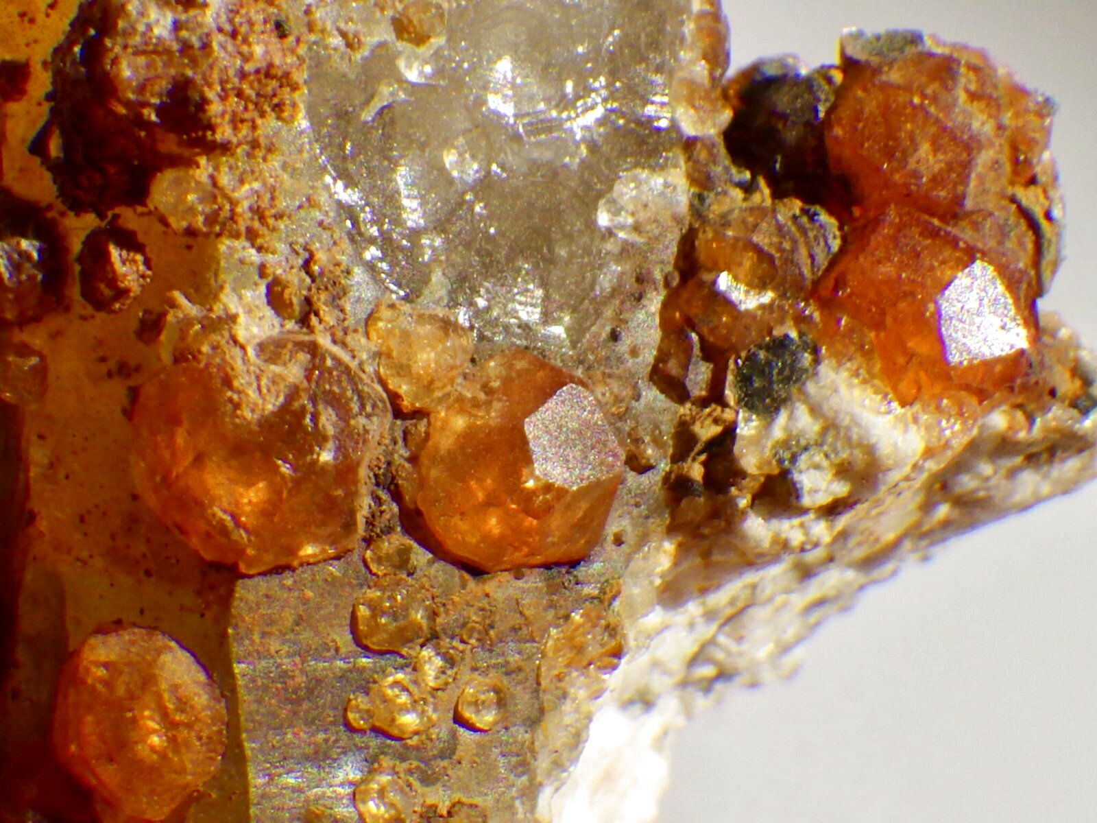 水晶の先端は残っていませんが、表面にガーネットが分布している様子がよく観察できます。