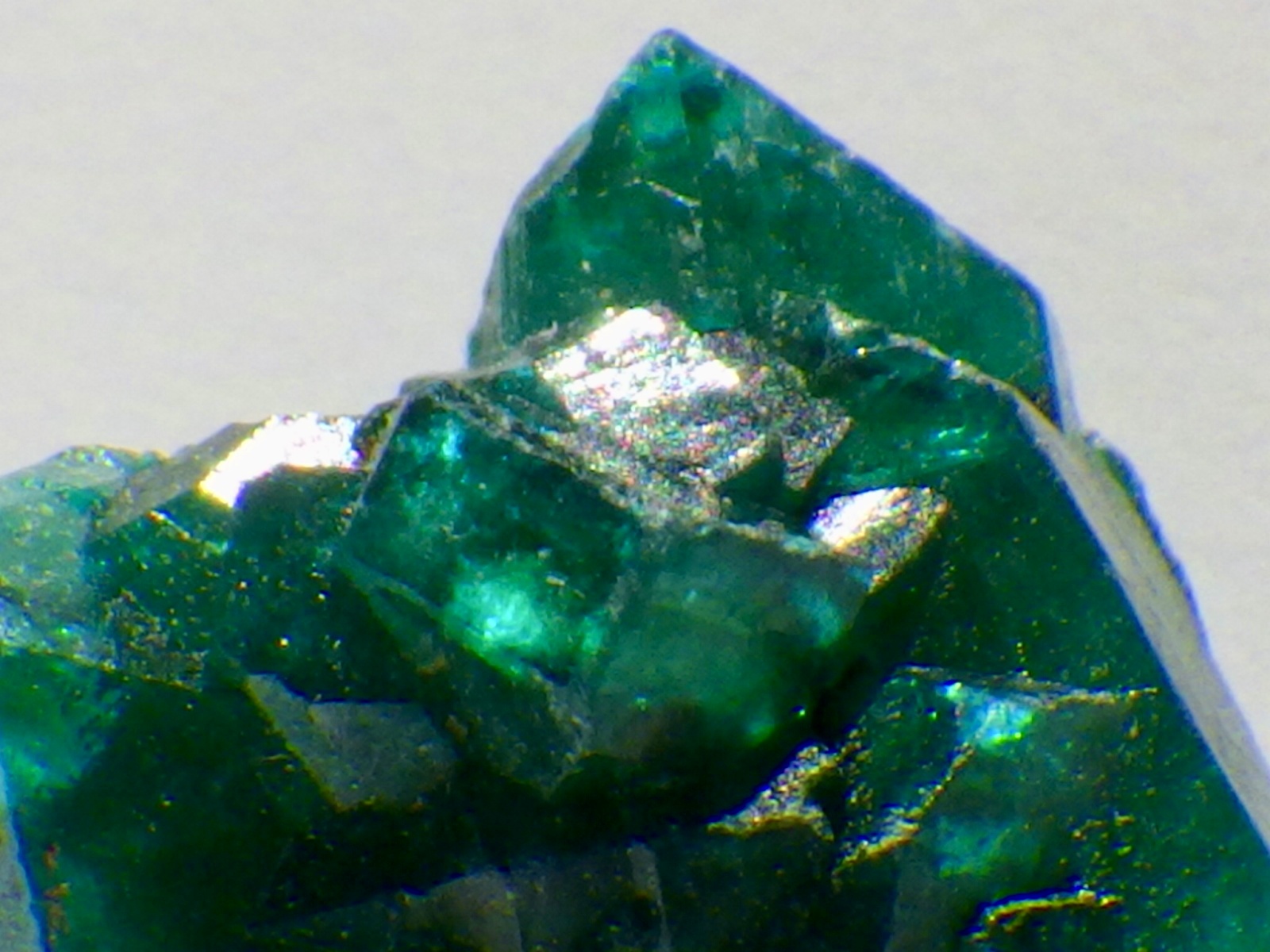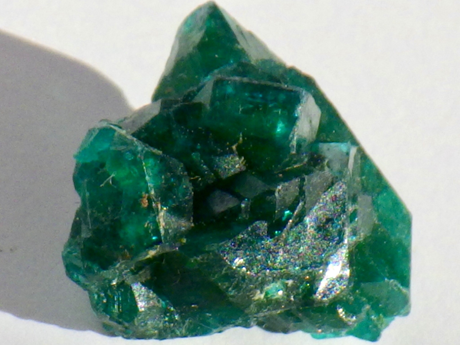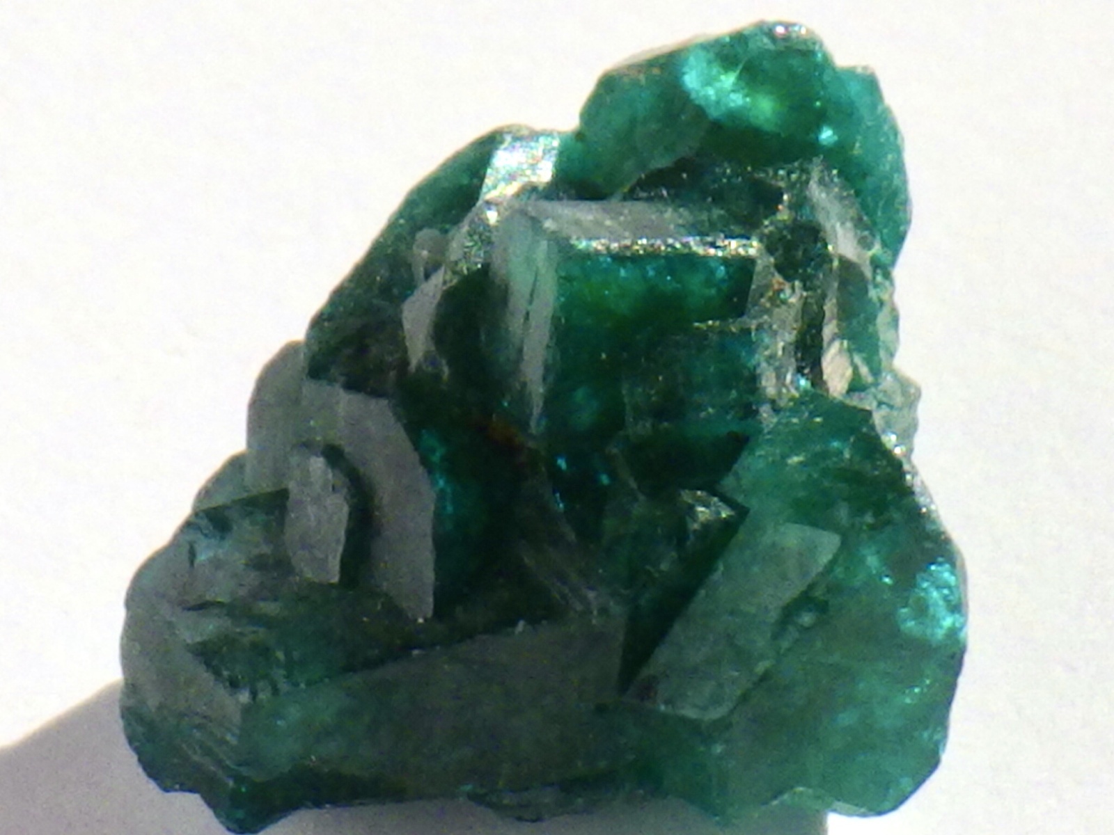 いくつもの結晶が集合しています。濃厚なグリーンや、内部から光を反射する様子が綺麗です。