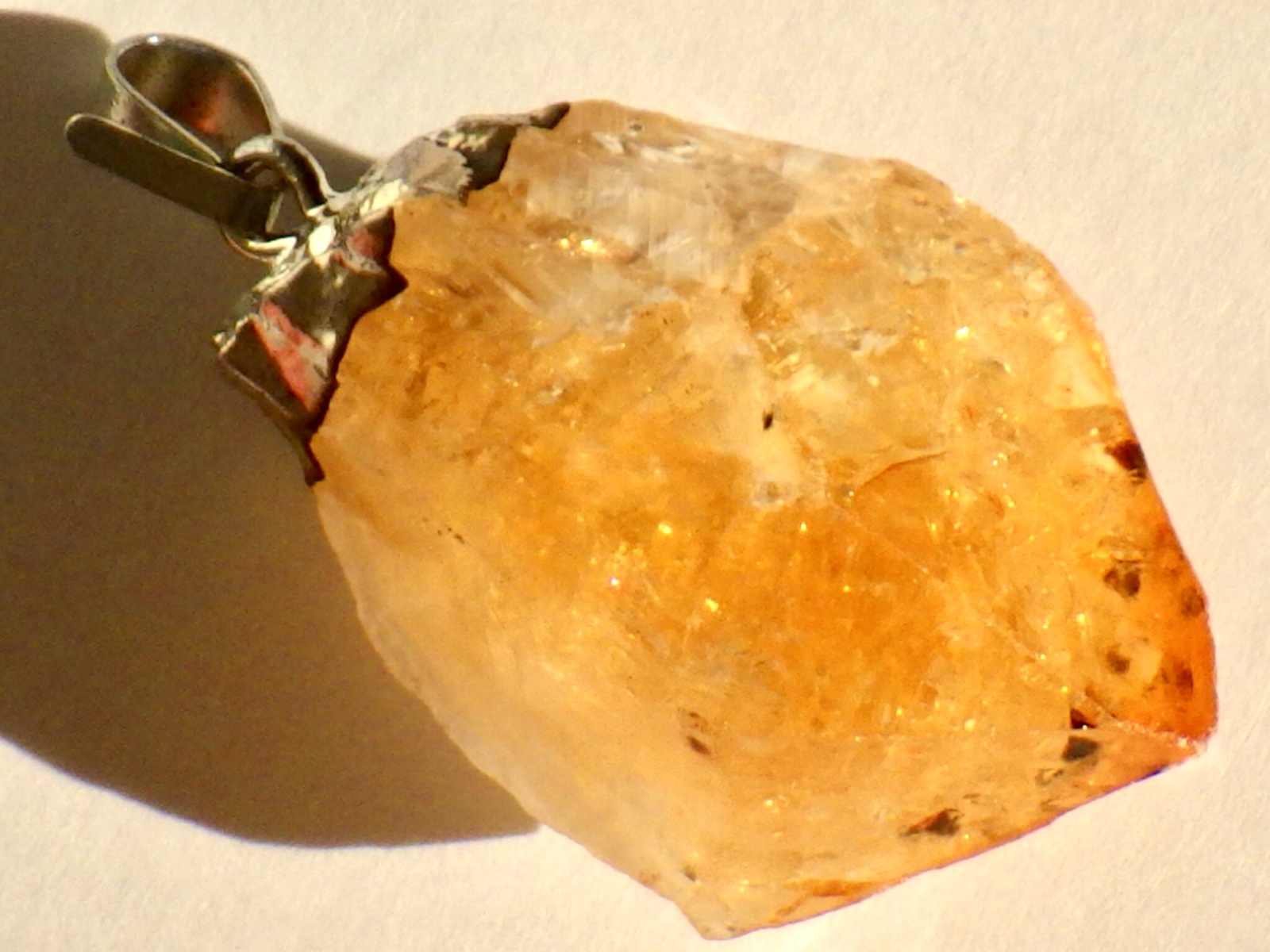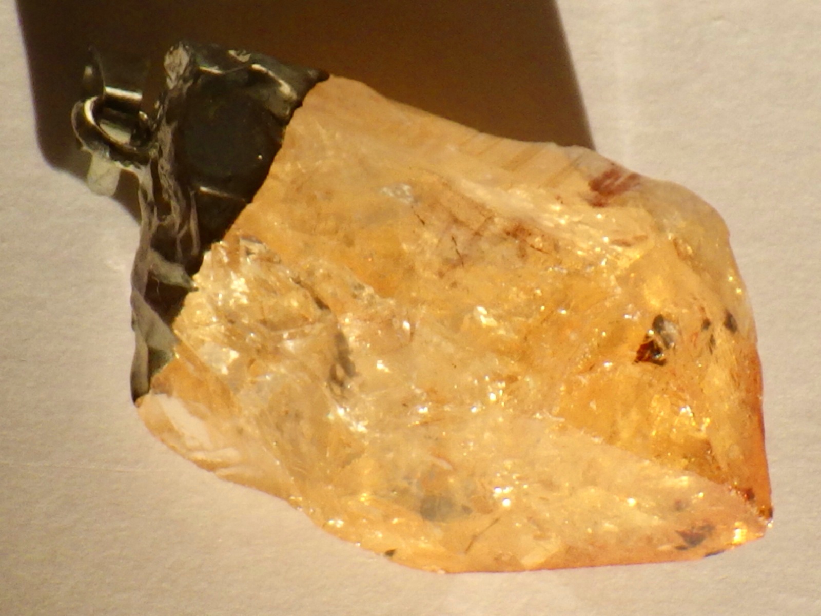アメシストを加熱処理して黄色く発色させたタイプのシトリンを使用したペンダントです。