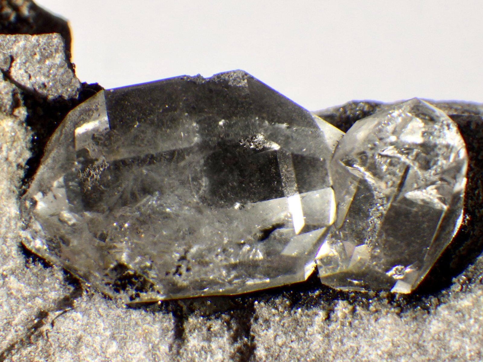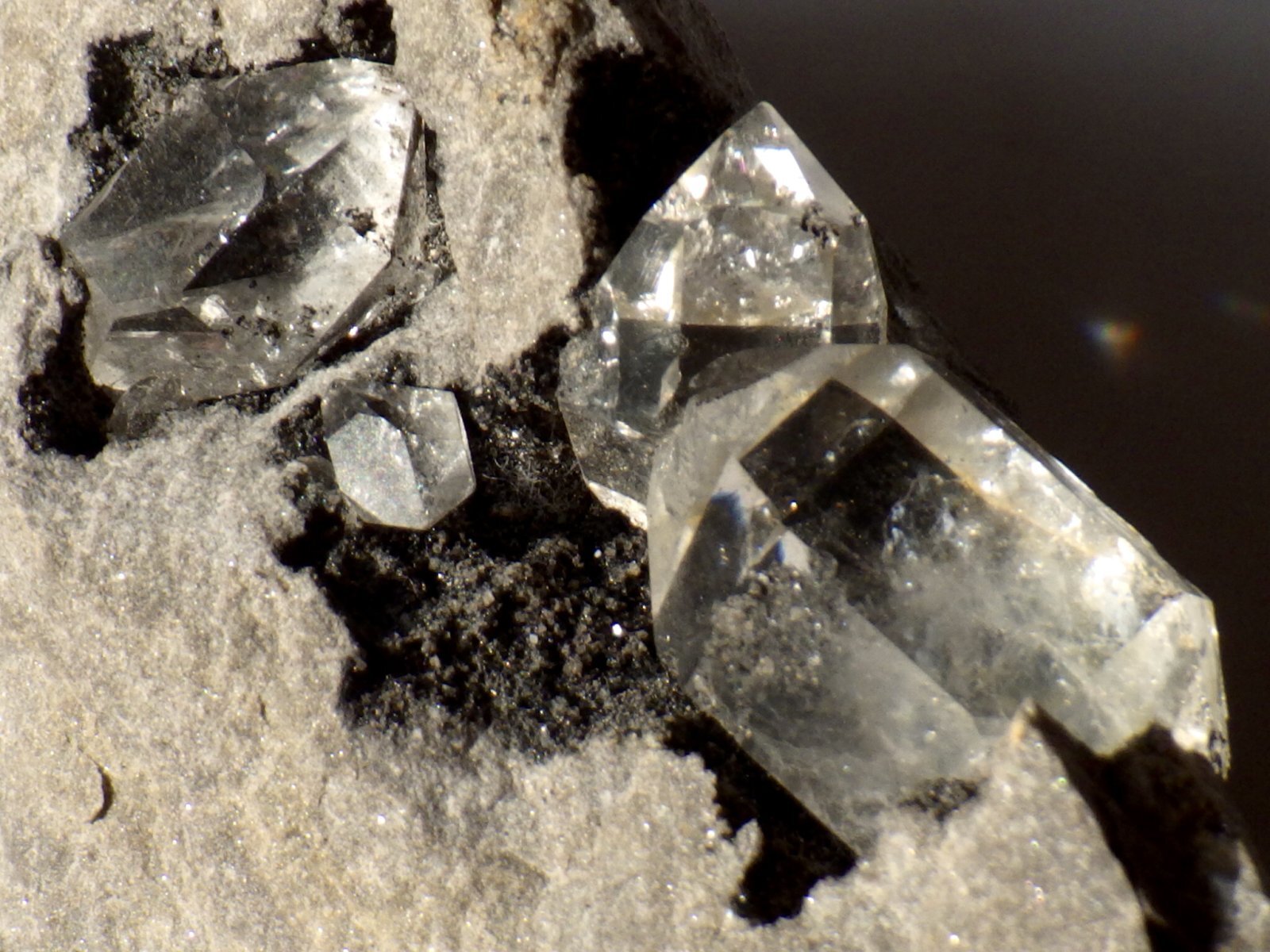 一番大きい水晶は内部にモヤ状インクルージョンが見られますが、どれもクリアーで輝きが強く、虹がきらめく様子なども観察できます。
