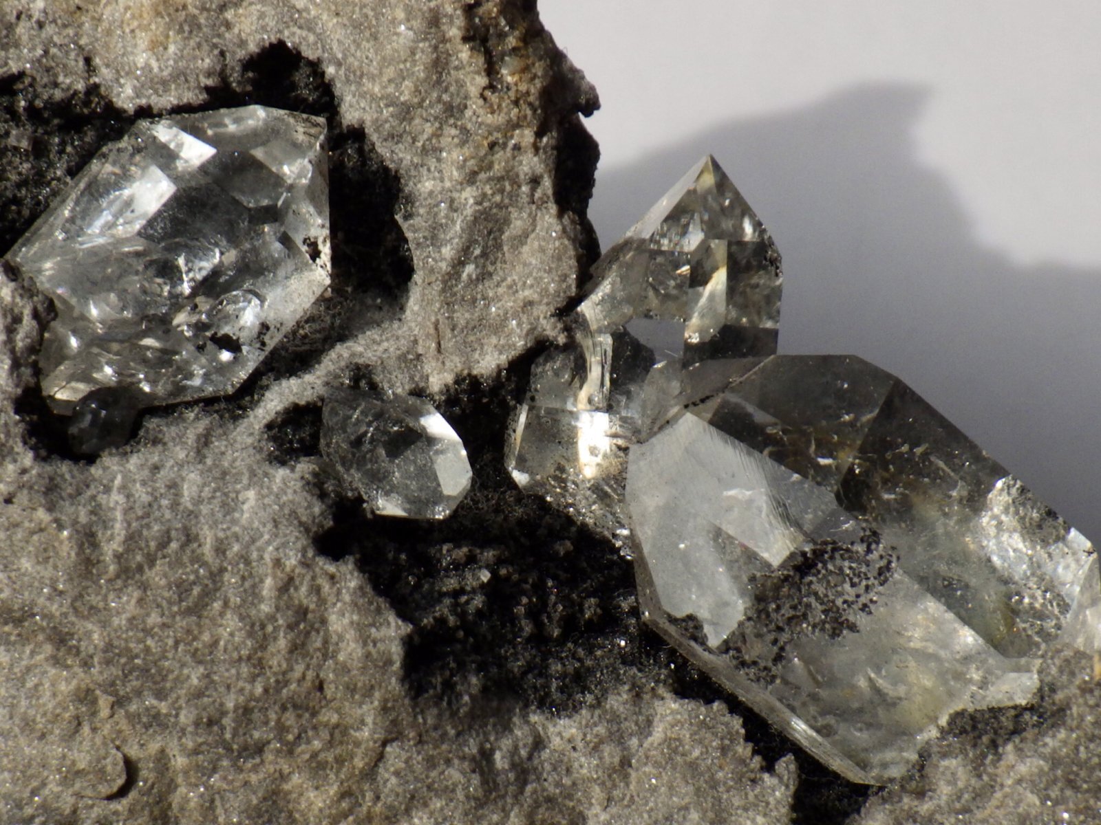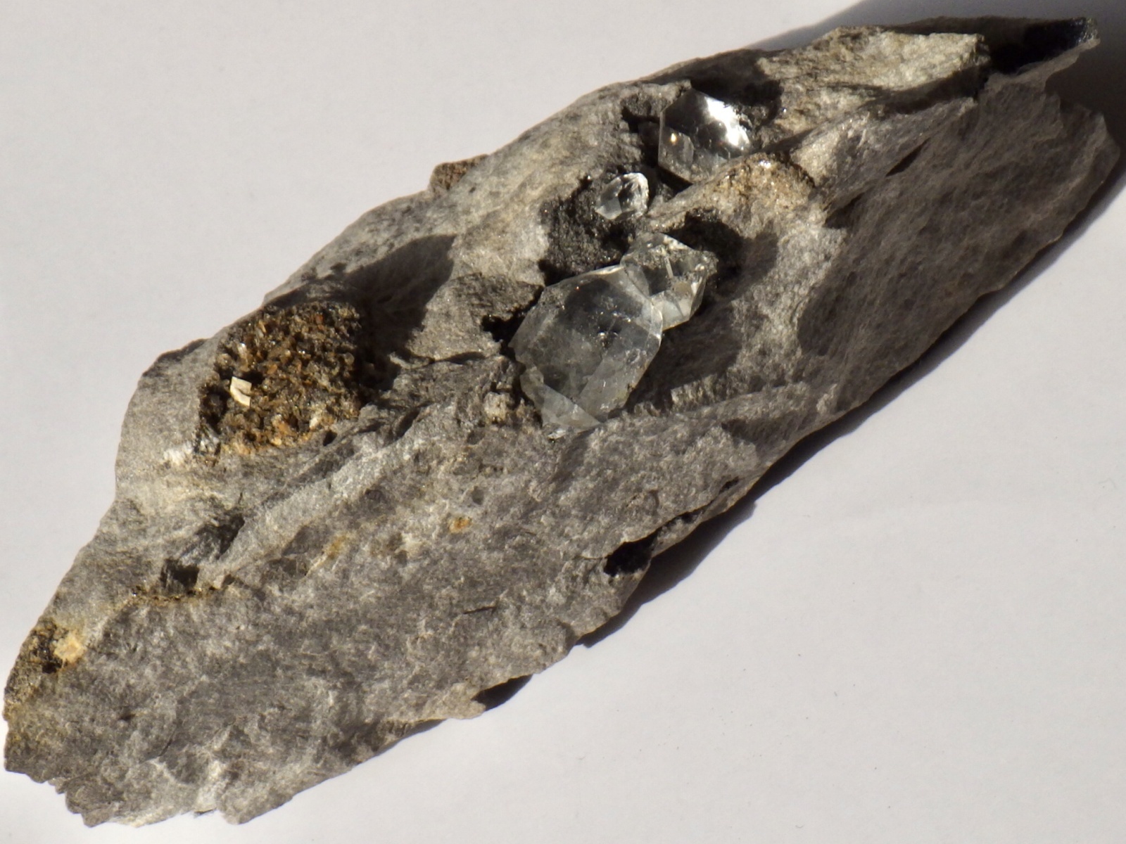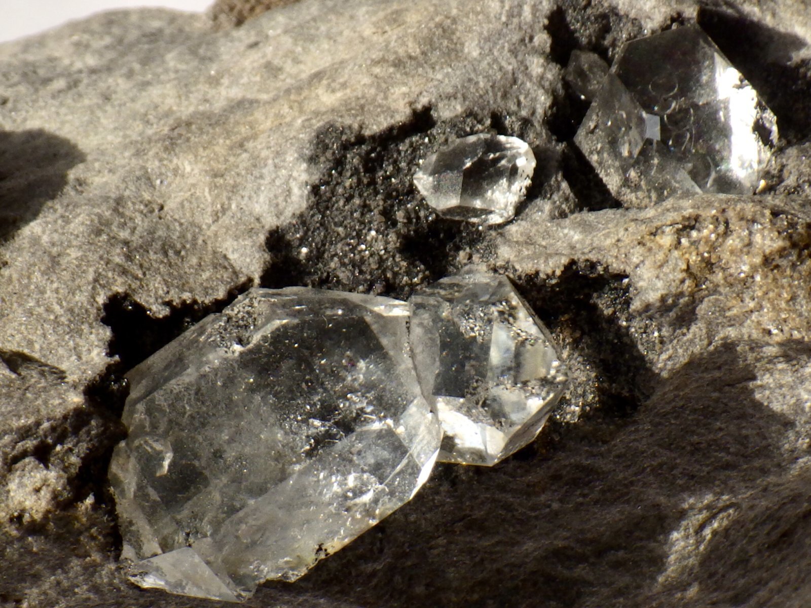 水晶はちょうど母岩上部にあたる部分にいくつかまとまって顔を出していて、どれも比較的サイズがありそれぞれ美しいです。