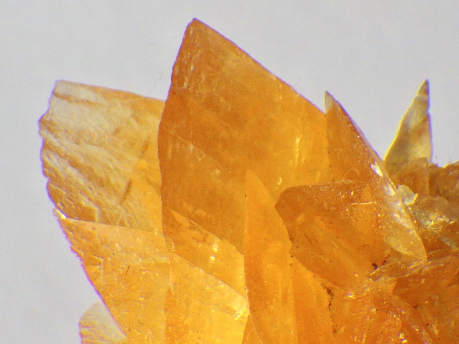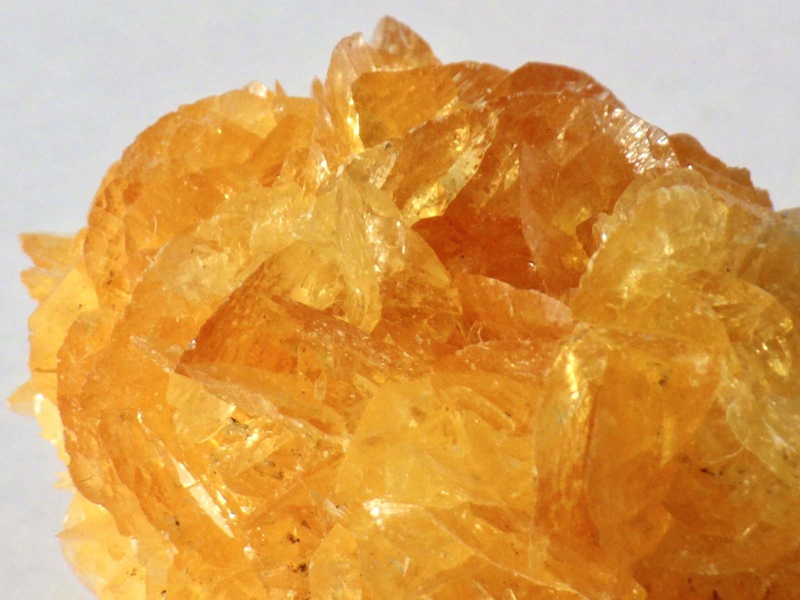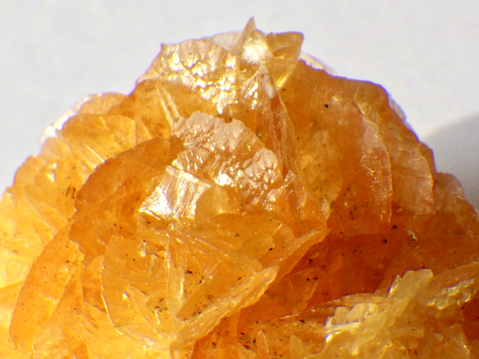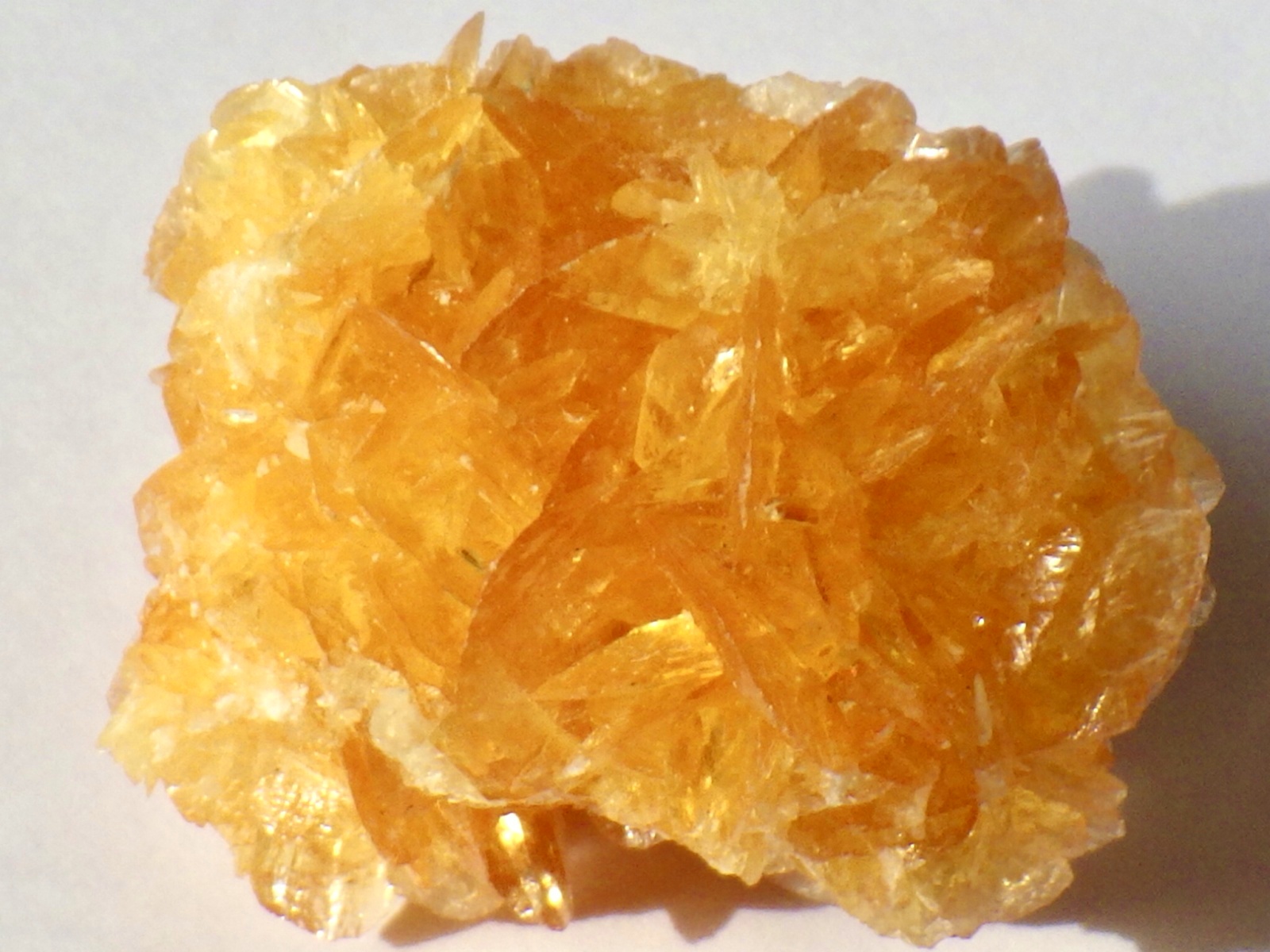 明るいオレンジ色の扇型の結晶が全面に集合しているクラスターです。